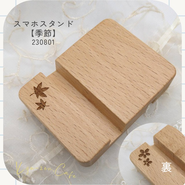 木の温もりを感じられる木製スマホスタンド。 季節を感じられる紅葉と桜のデザイン 両面彫刻していて、くぼみ部分の長さが異なるので、スマホの厚みや角度でお好みの面をお使いいただけます。 【ご使用方法】 ・スマホを置いて快適に使う ・ショップカード等の台座にする 【サイズ】約 よこ6cm たて7.8cm 厚み1.9cm 【デザイン】季節 【木材】天然木 【ギフトラッピング】なし 【配送方法】クリックポスト 【発送日目安】お支払いより10日前後 *久善オリジナルのデザインで、レーザーで製作彫刻を施しております。 *一作品毎に異なる、天然木材の木目・色味・風合い。そちらもオリジナルデザインと共にお楽しみいただけましたら幸いです。 木製ならではの、あたたかみの感じられる作品に仕上がりました。 作品に関する質問など、いつでも受け付けておりますので、お気軽にお問い合わせください。 ご覧いただきありがとうございました。