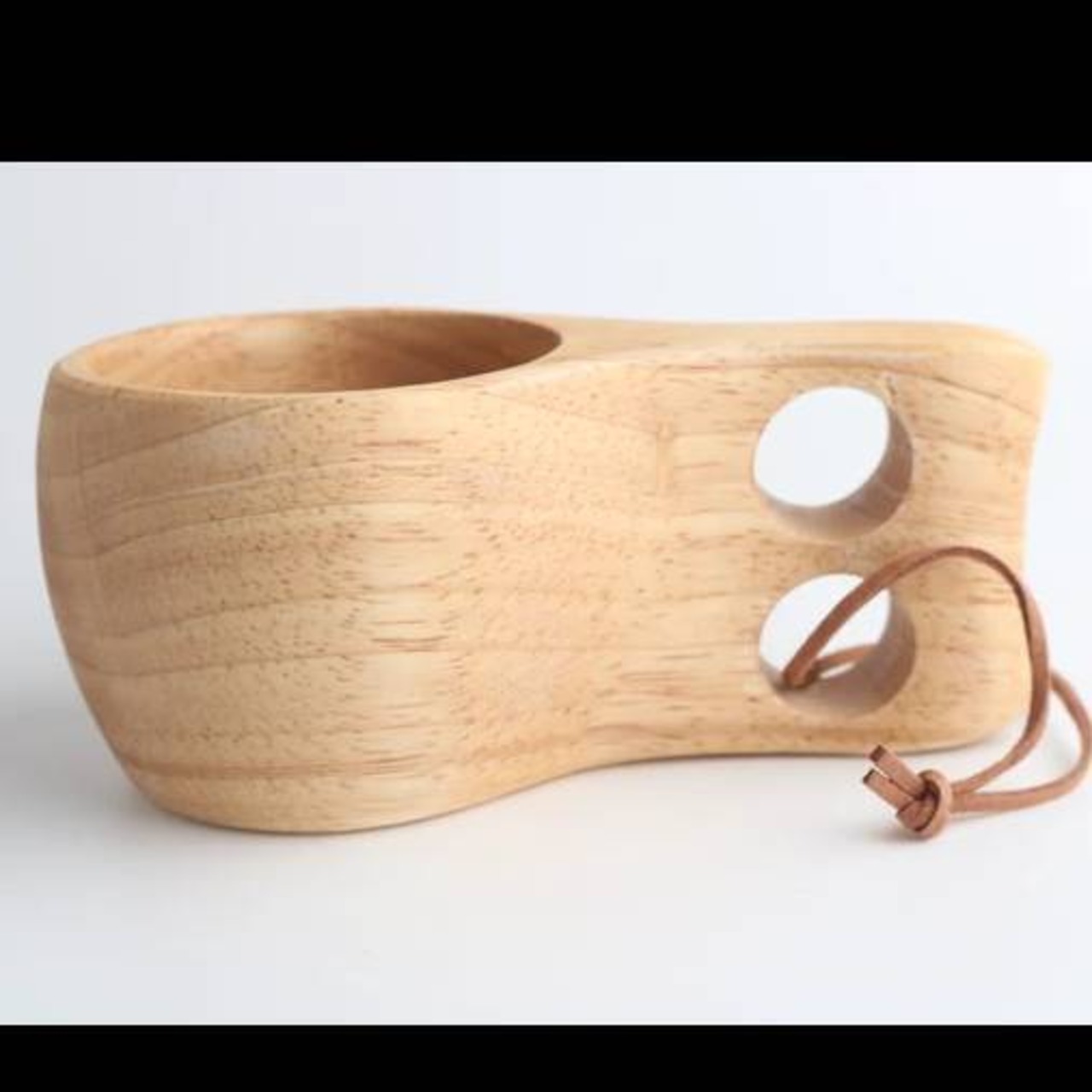 *「木製ククサカップ 革紐付 小」は、木の温もりを大切にした商品で、一つ一つ異なる木目や風合いを楽しむことができるのがこのカップの魅力です。シンプルながらも存在感があり、インテリアとしてもお楽しみいただける仕上がりとなっております。
