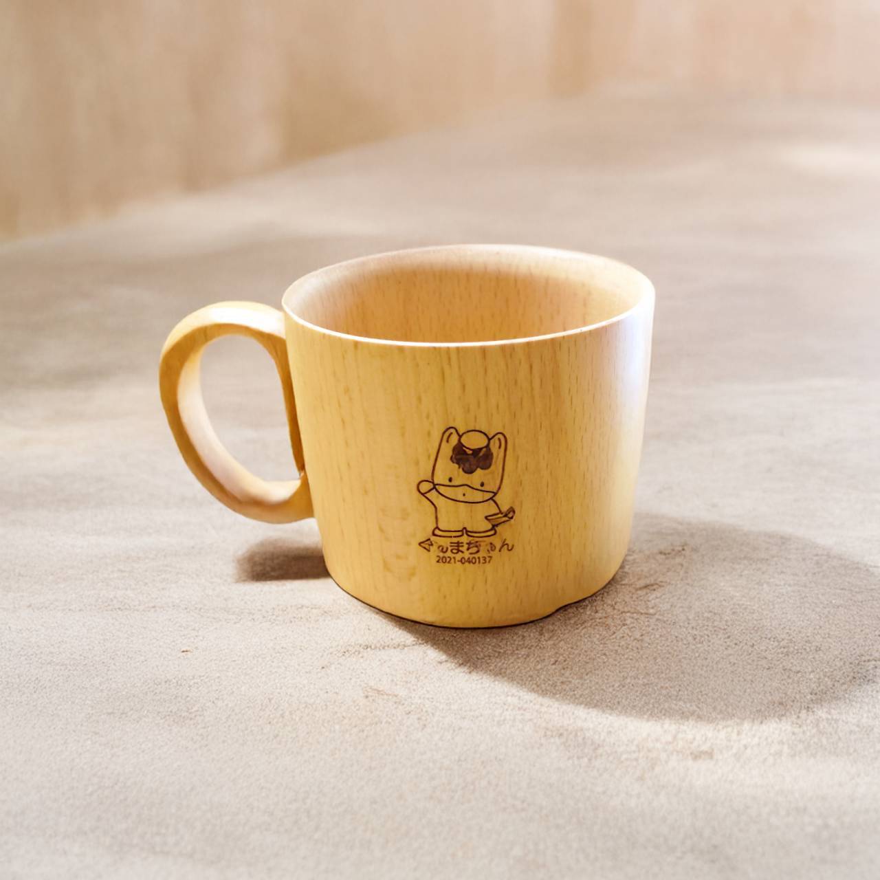 *「ぐんまちゃん木製マグカップ 小」は、木の温もりを大切にした商品です。一つ一つ異なる木目や風合いを楽しむことができるのがこのカップの魅力です。シンプルながらも存在感があり、インテリアとしても楽しむことができます。