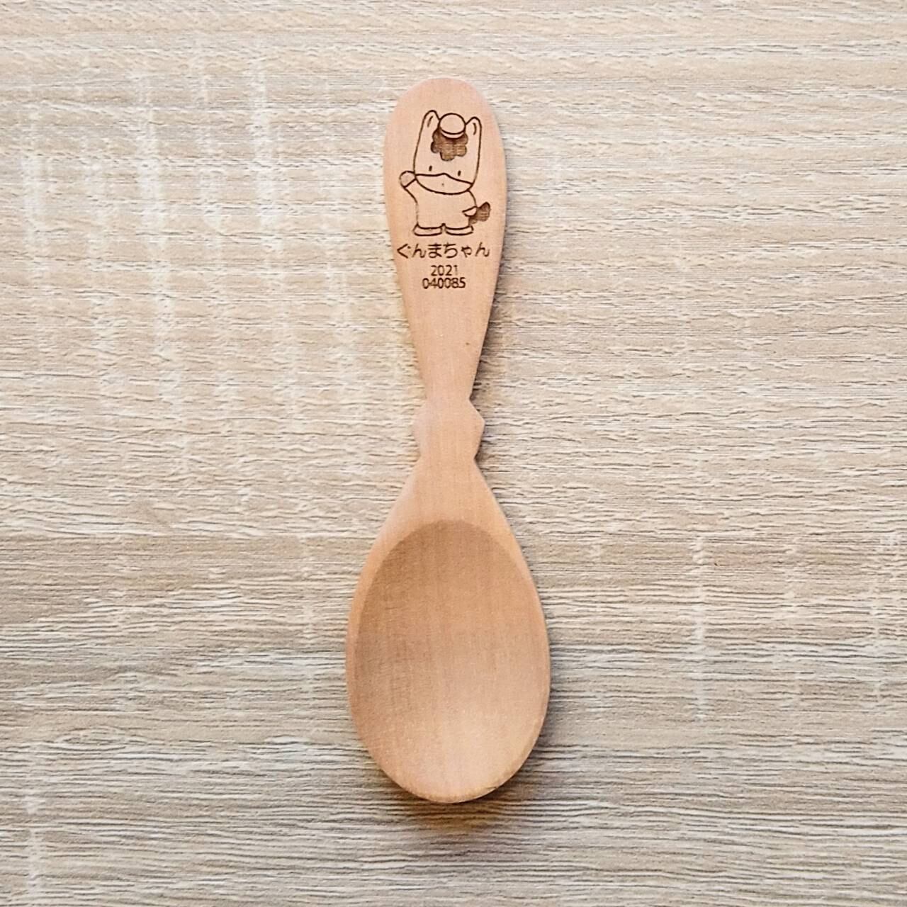 あたたかみを感じられる木製デザートスプーンに、ぐんまちゃんのデザインをレーザーで彫刻しています。