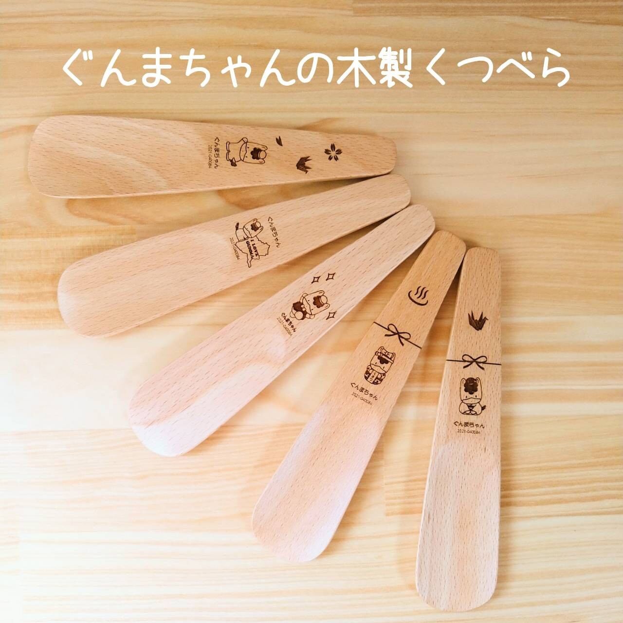 あたたかみを感じられる木製靴べらに、ぐんまちゃんのデザインをレーザーで彫刻しています。