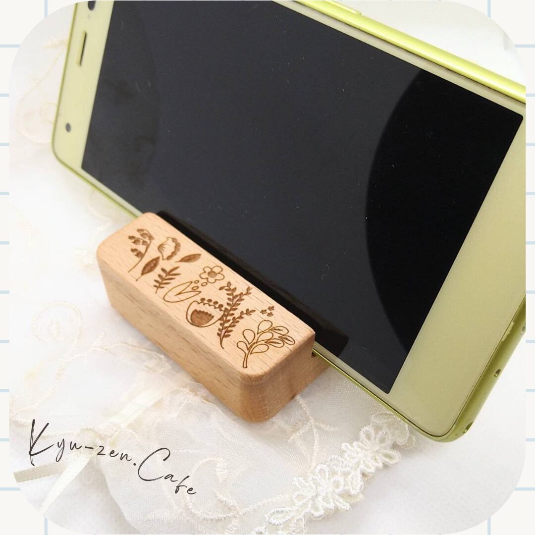 木の温もりを感じられる木製スマホスタンド。
