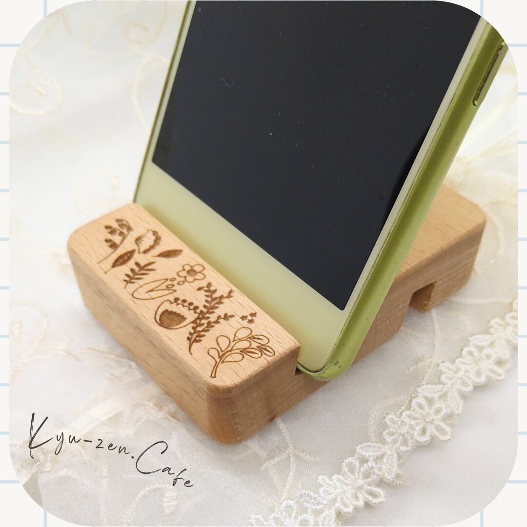 木の温もりを感じられる木製スマホスタンド。